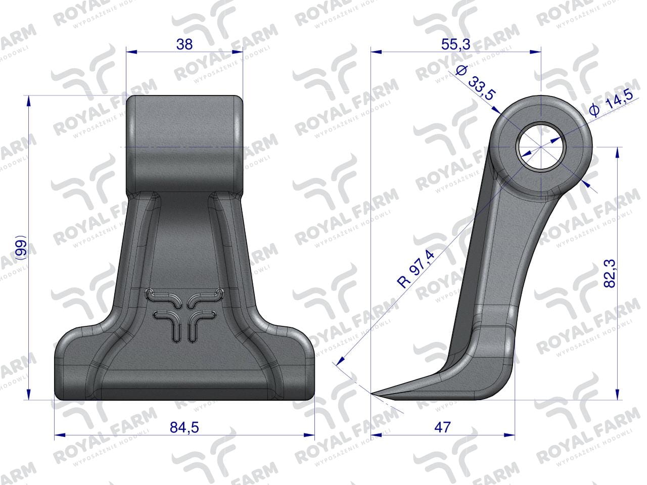 Bijak młotkowy mulczarka zastosowanie Unia Kornik L otwór 14 mm Royal Farm