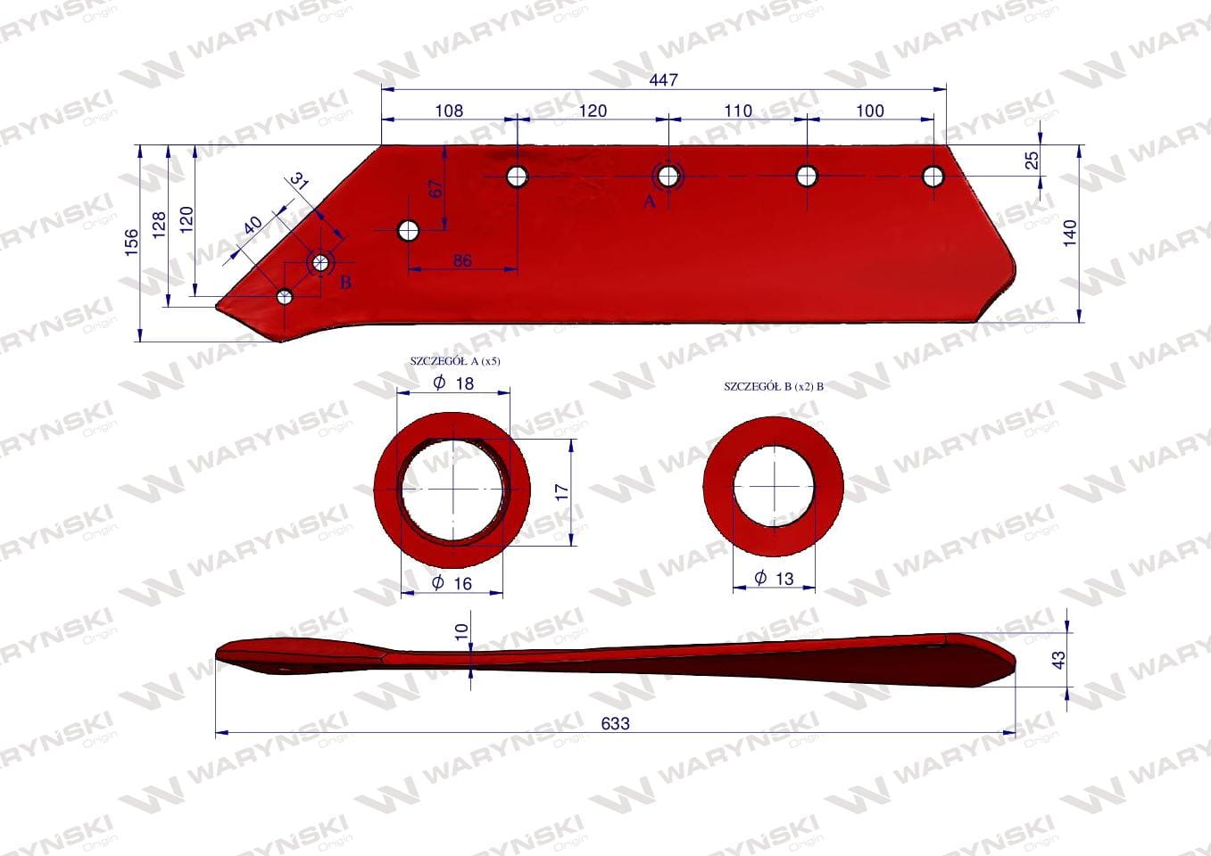 Części robocze marki Waryński wykonane są z niezwykle wytrzymałej i odpornej na ścieranie stali borowej pochodzącej z europejskich hut. Każda, nawet najmniejsza dostawa, posiada dołączony certyfikat potwierdzający skład materiałowy. Stal borowa posiada właściwości szczególnie przydatne w zastosowaniach konstrukcyjnych wymagających dużej wytrzymałości. Połączenie wysokogatunkowej stali borowej, monitorowanego procesu obróbki cieplnej oraz skrupulatna kontrola jakości produktów Waryński to gwarancja wydłużonego okresu eksploatacji. Produkty Waryński to oszczędność kosztów związanych z powolnym ścieraniem i zużyciem części roboczych. W trosce o trwałość naszych produktów oraz zadowolenie klientów proces produkcji lemieszy Waryński nie zakłada operacji spawania. Wszystkie rodzaje otworów są wykonane w specjalny sposób minimalizujący naprężenia oraz zmniejszający ryzyko pęknięć.