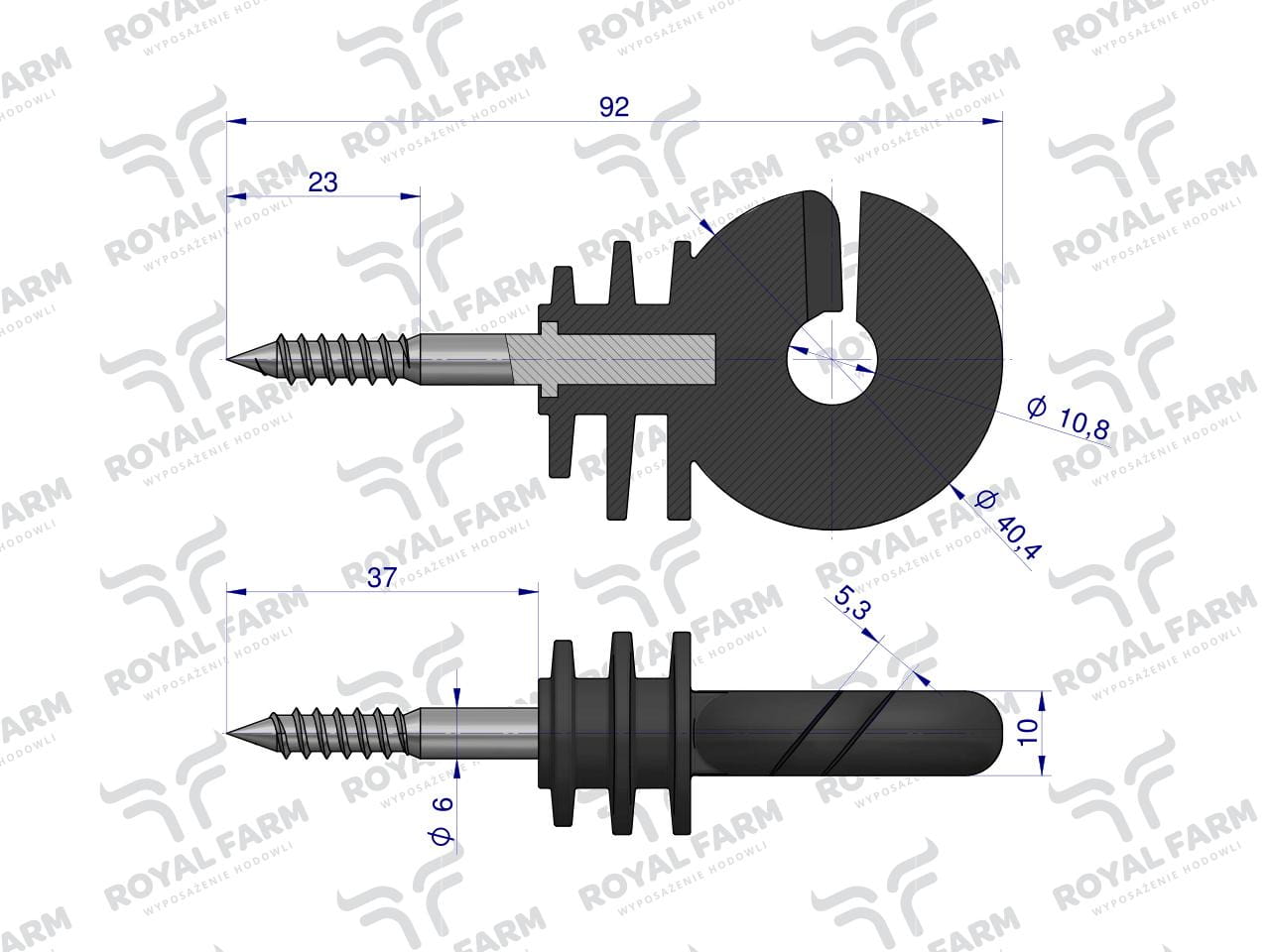 Izolator okrągły z wkrętem fi 6 do drewna ROYAL FARM