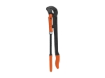 Wykonany z odkuwanej, wysokiej jakości stali chromowo-wanadowej (CrV). Szlifowane krawędzie szczęk mocno chwytają nawet śliskie powierzchnie rur. Posiada śrubową regulację rozwarcia szczęk.