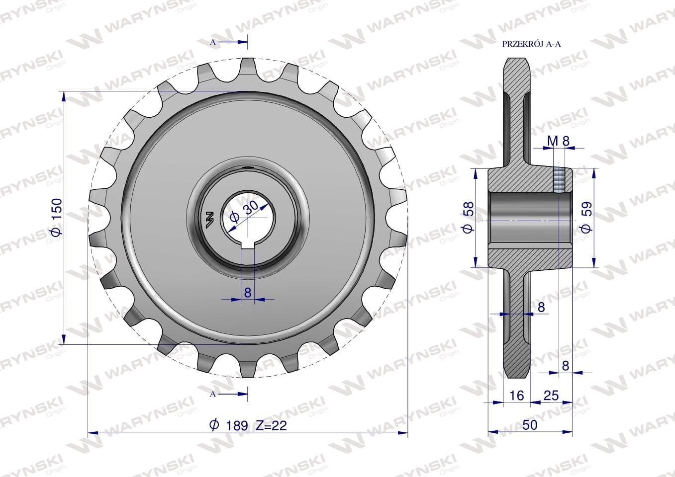 Koło łańcuchowe stalowe hartowane Z-22 1" fi-30 Rozrzutnik WARYŃSKI