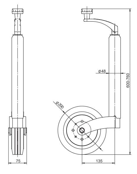 Koło manewrowe fi 48 z felgą stalową zastosowanie przyczepka SP