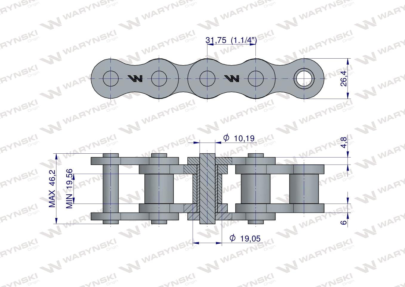 Łańcuch rolkowy wzmocniony przemysłowy 20BH-1 (R1 1.1/4) 5 m Waryński
