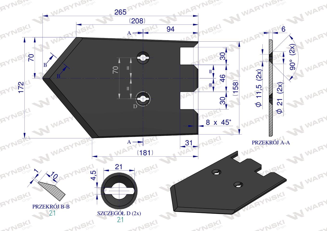 Lemiesz 172 mm listwowy lewy Grimme szerokość wyorywania 580 Waryński