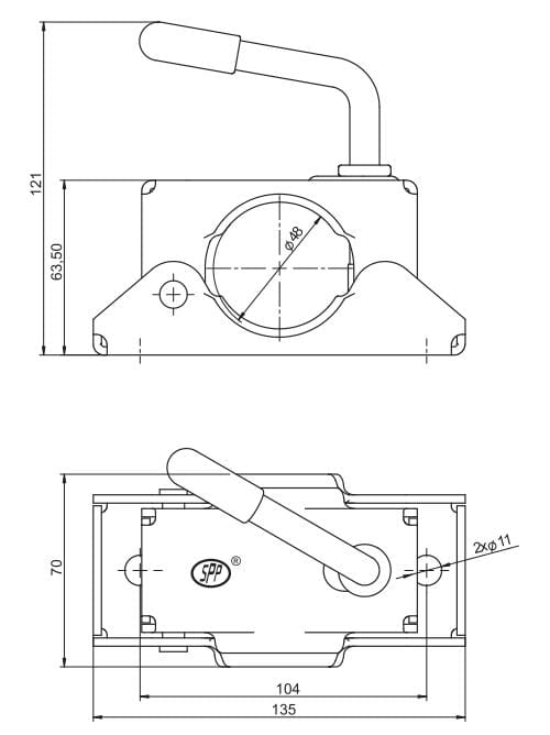 Obejma koła manewrowego fi 48 zastosowanie przyczepka SPP