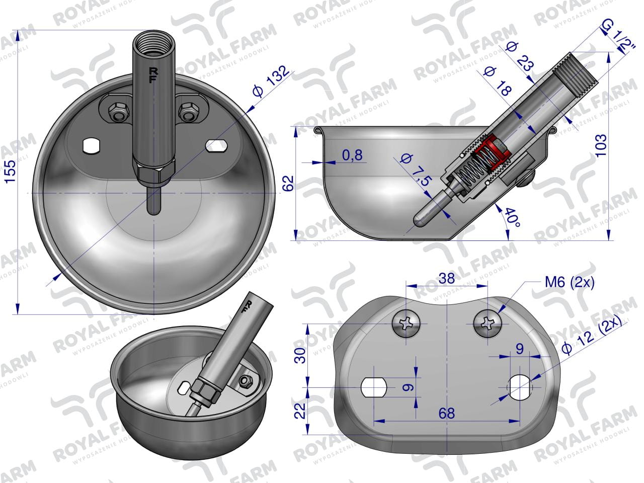 Poidło miskowe dla prosiąt stal nierdzewna S ROYAL FARM