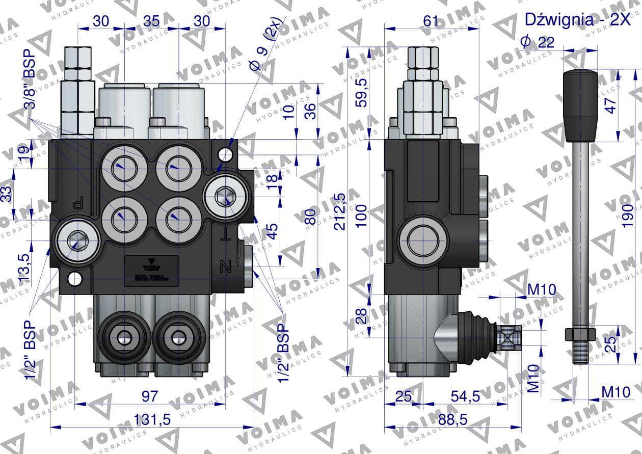 Rozdzielacz hydrauliczny 2-sekcyjny 40L VOIMA