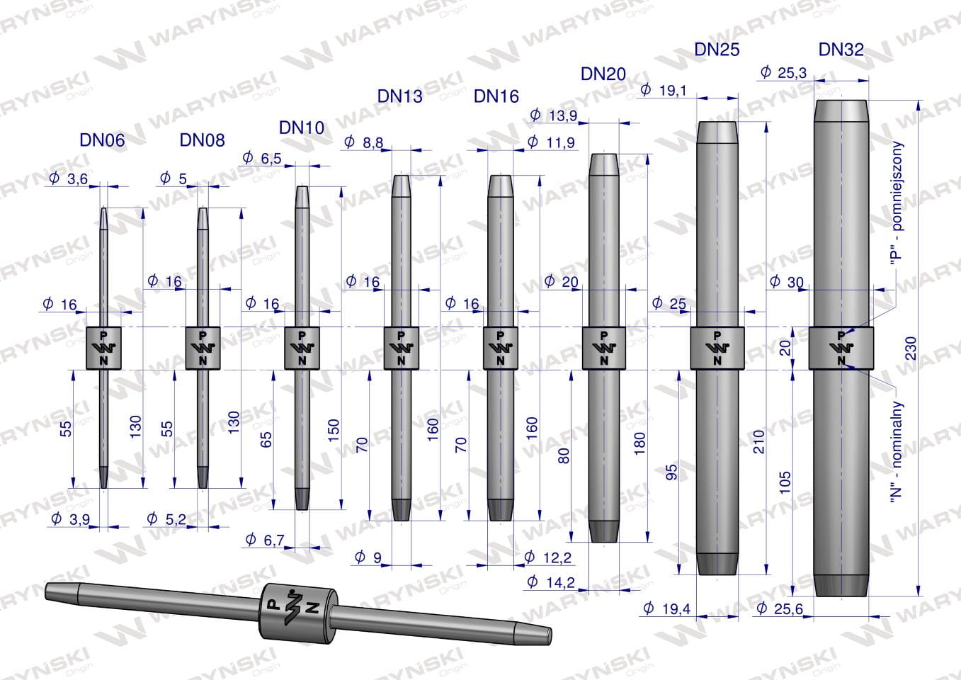 Sprawdziany do zakuwania przewodów hydraulicznych (06. 08. 10. 13. 16. 20. 25. 32) Waryński