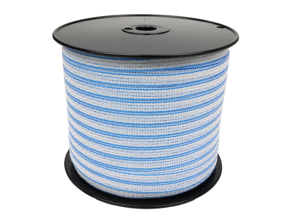 Wytrzymała i wydajna Taśma ogrodzeniowa marki Royal Farm przeznaczona do elektryzatorów. Dzięki zastosowaniu 4 przewodów ze stali nierdzewnej (o średnicy 0,15 mm każdy) zapewnia bardzo dobrą przewodność prądu, co skutecznie zabezpiecza pastwiska i wybiegi. Charakterystyczne biało-niebieski kolory zwiększają widoczność ogrodzenia, co jest istotne zarówno dla zwierząt, jak i ludzi. Szerokość taśmy 12 mm zapewnia odpowiednią wytrzymałość mechaniczną i odporność na warunki atmosferyczne. Dzięki dużo większej powierzchni jest jeszcze bardziej widoczna niż plecionka i zapewnia większe pole styku ze zwierzęciem co poprawia jej działanie. Idealna do ogrodzeń elektrycznych dla bydła, koni, owiec czy dzikich zwierząt.