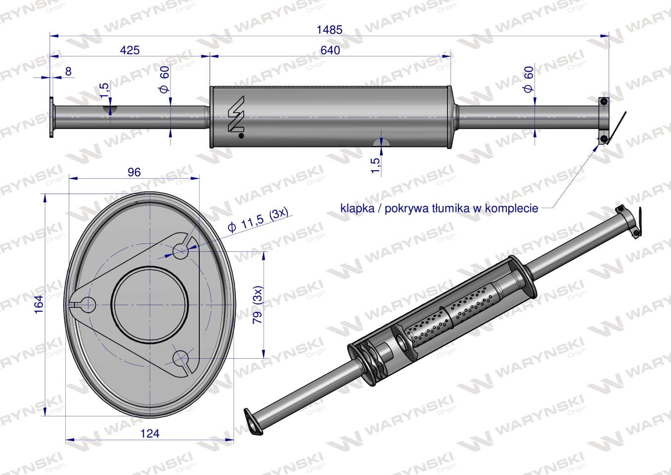 Tłumik prosty długi 1485mm 8kg C-385 ( prosty ) INOX WARYŃSKI