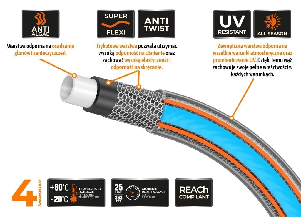 ✔️ 4-warstwowa budowa węża.