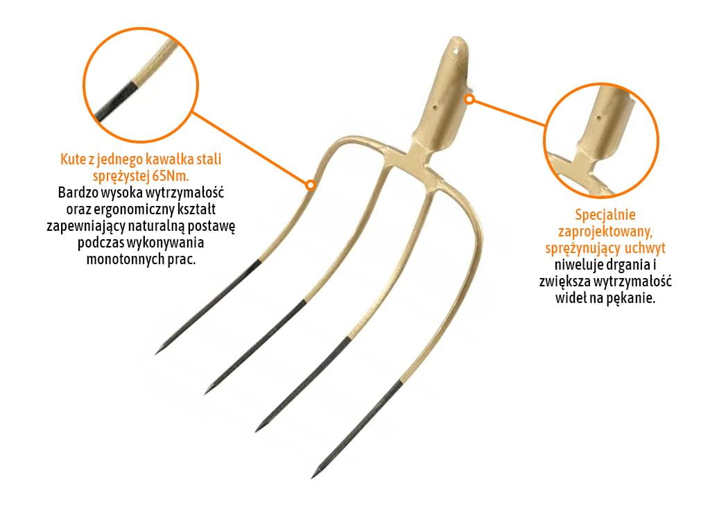 Zastosowanie: Narzędzie do pracy w gospodarstwie domowym jak również rolnym służy do przerzucania siana słomy chwastów liści czy mieszania kompostu. Bardzo przydatne na działce i w ogrodzie.