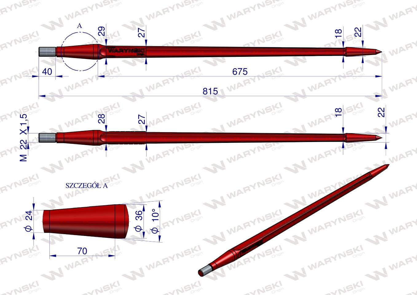 Ząb ładowacza uniwersalny czerwony prosty L- 810 mm zastosowanie 5193-FT1N Tur WARYŃSKI