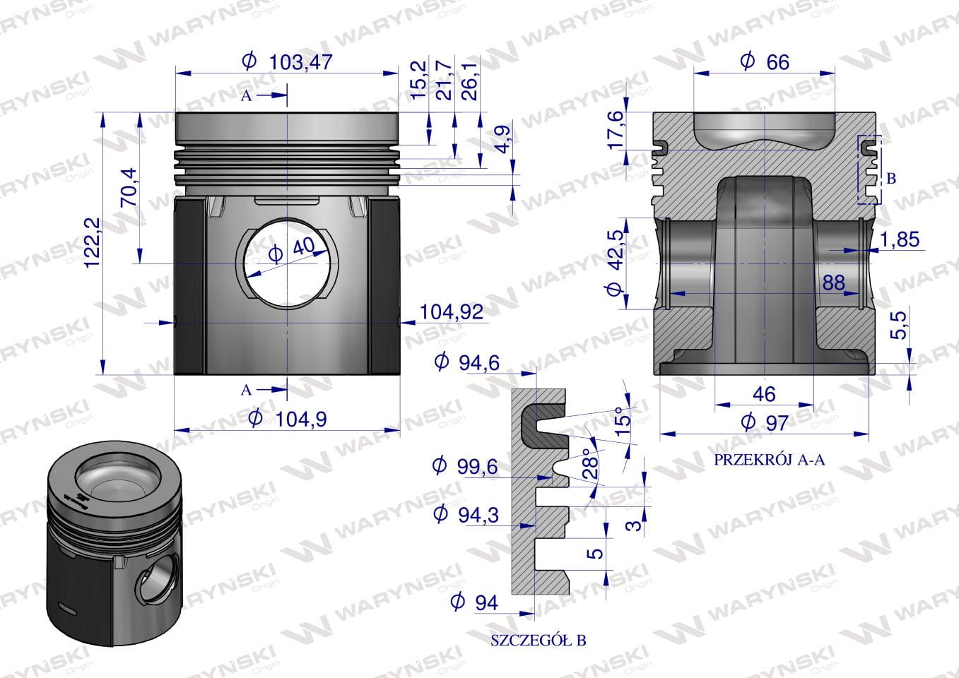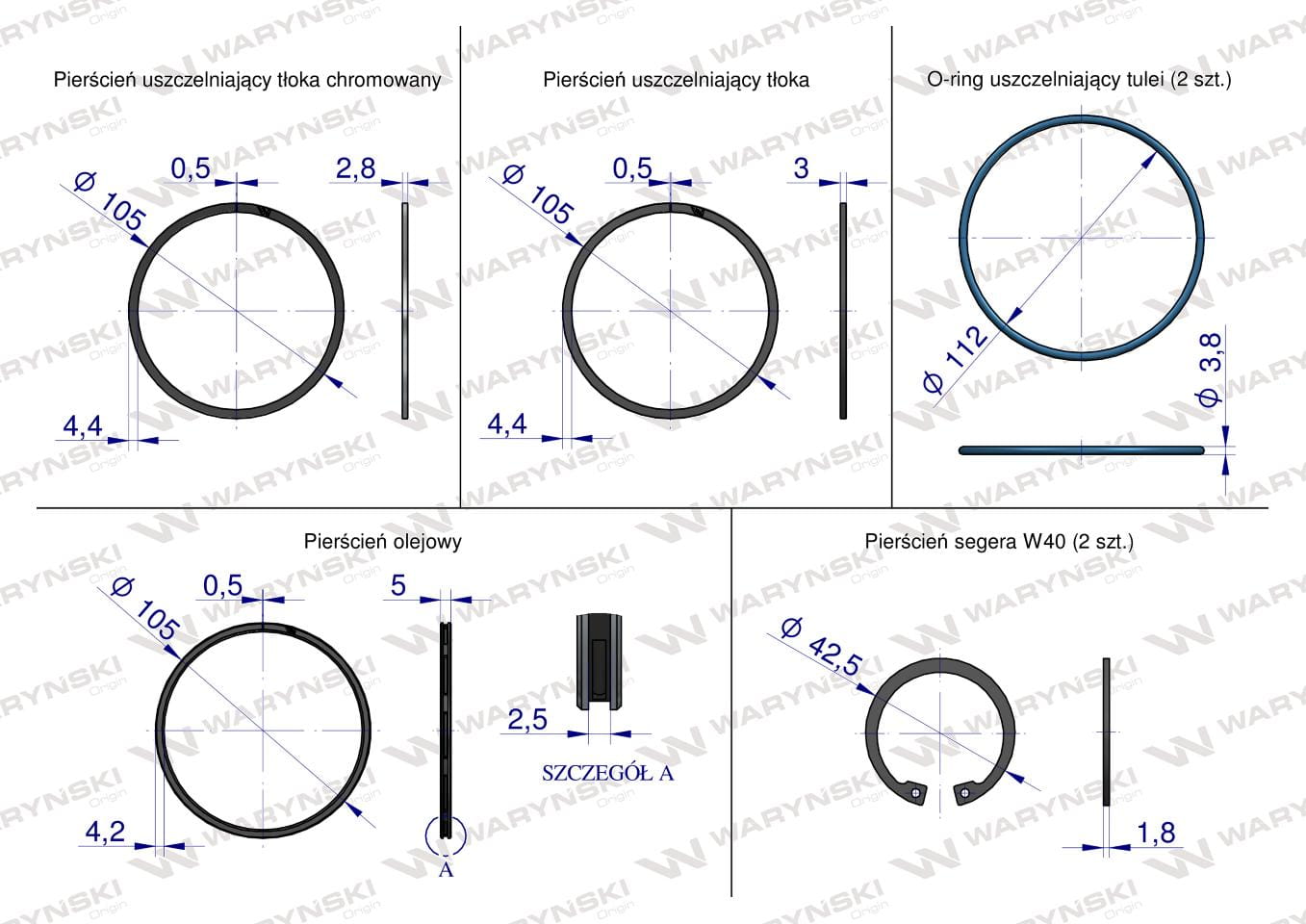 Zestaw Naprawczy Zetor 105 Turbo FI-105 3-pierścienie WARYŃSKI