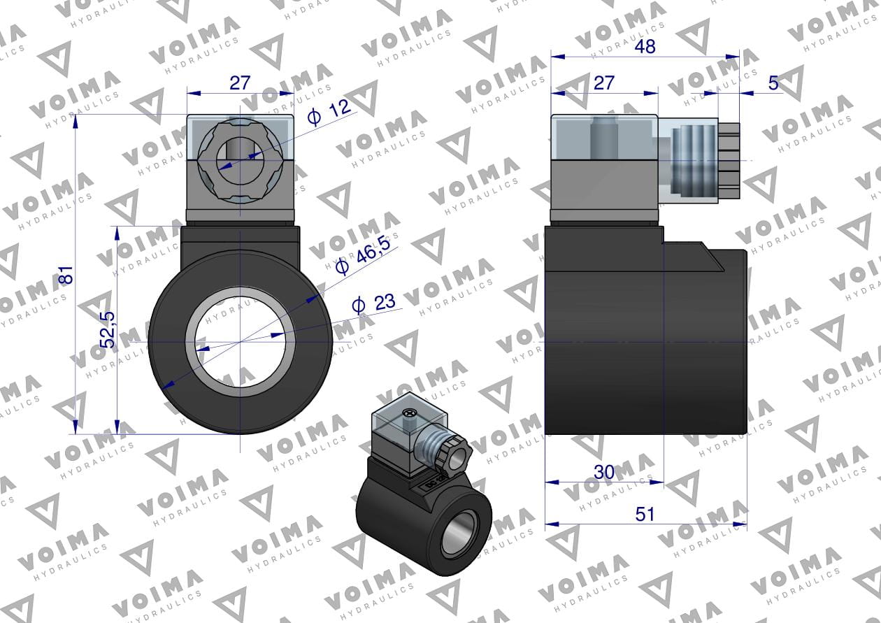 Cewka do rozdzielacza (elektrozawór CETOP 3 NG6) 50L 12V VOIMA