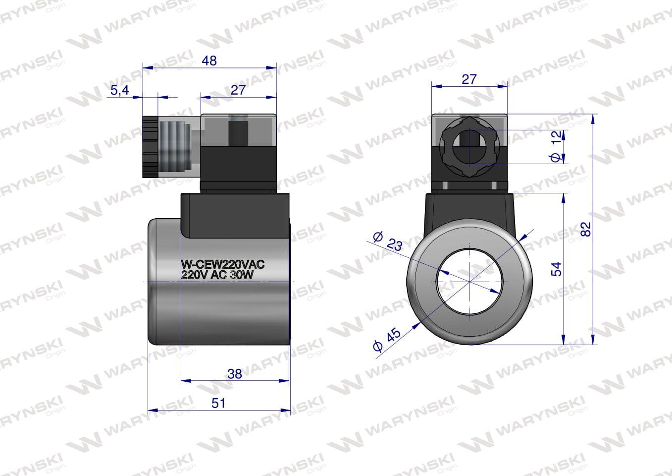 Cewka dzielnika elektrozaworu W-E38DVS6/2. W-E12DVS6/2 220V AC 30W Waryński