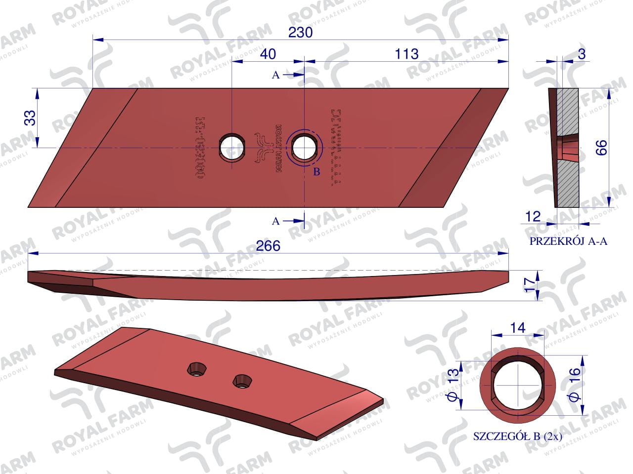 Linia produktów marki Royal Farm to odpowiedź na potrzeby klientów poszukujących sprawdzonych i trwałych części roboczych w atrakcyjnej cenie. Produkty Royal zostały zaprojektowane z myślą o użytkownikach, którzy oczekują dobrej wydajności, solidnego wykonania i przystępnych warunków zakupu – bez kompromisu dla podstawowej jakości pracy w polu.