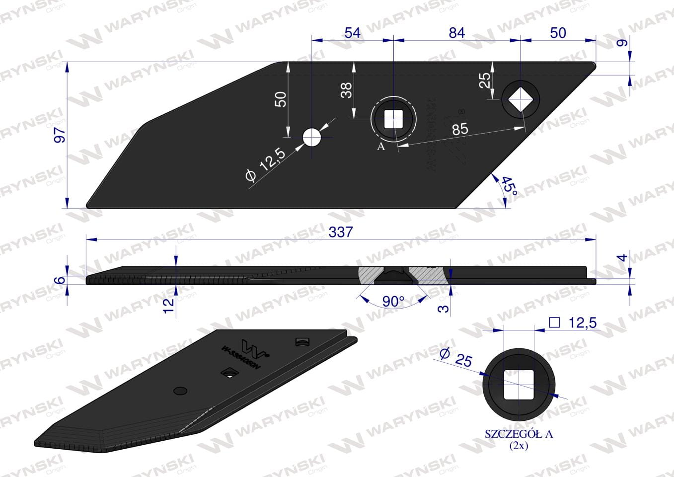 Dłuto nakładka lemiesza prawa zamiennik Lemken Pług stal borowa Napawane WARYŃSKI
