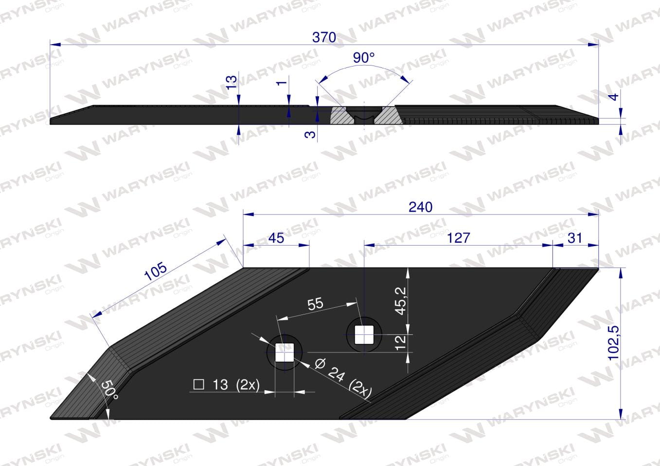 Dłuto nakładka lemiesza prawa zamiennik Lemken Pług stal borowa Napawane WARYŃSKI