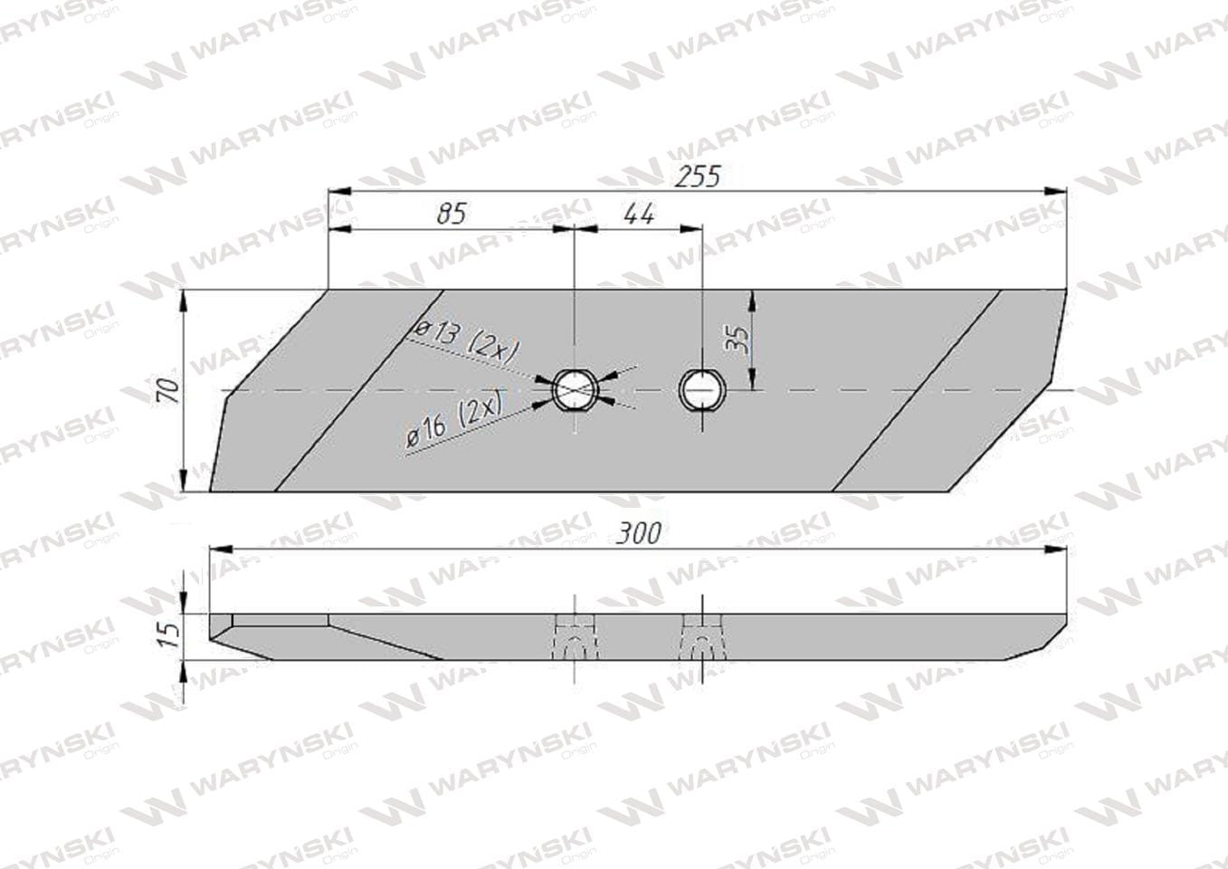 Dłuto nakładka lemiesza prawe dwuotworowe 15 mm zastosowanie VIS/17 XL Unia Pług stal borowa WARYŃSKI