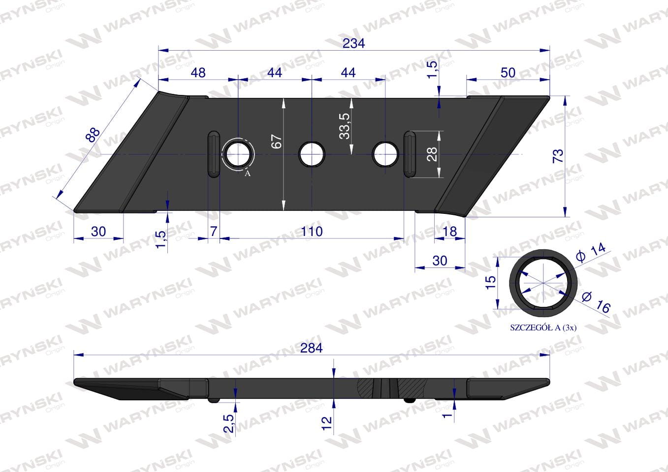 Dłuto nakładka lemiesza prawe zastosowanie VIS/17 XL Unia Pług Napawane WARYŃSKI