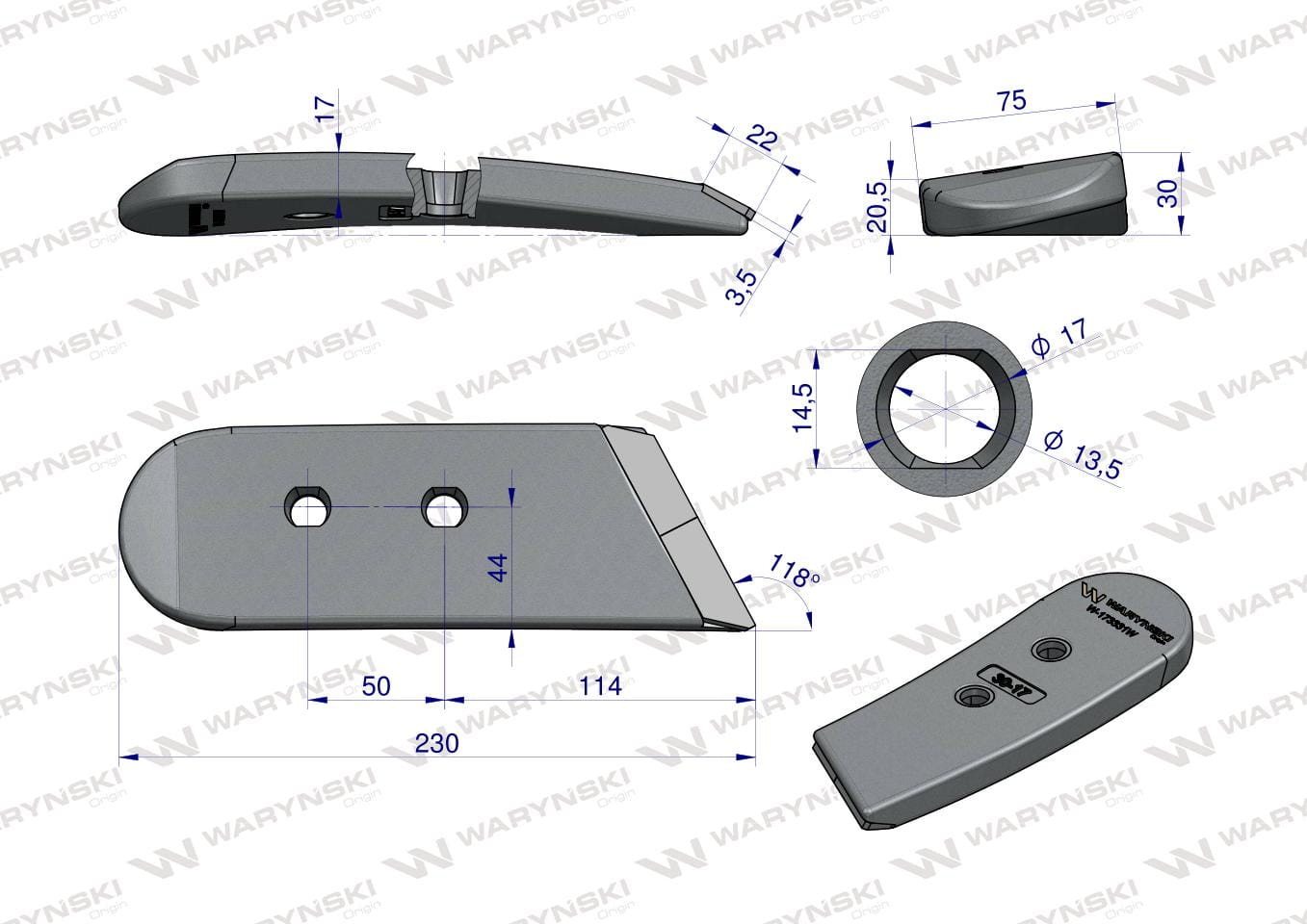 Dłuto. nakładka lemiesza lewe zastosowanie Gregoire-Besson z węglikiem wolframu WARYŃSKI MAXX