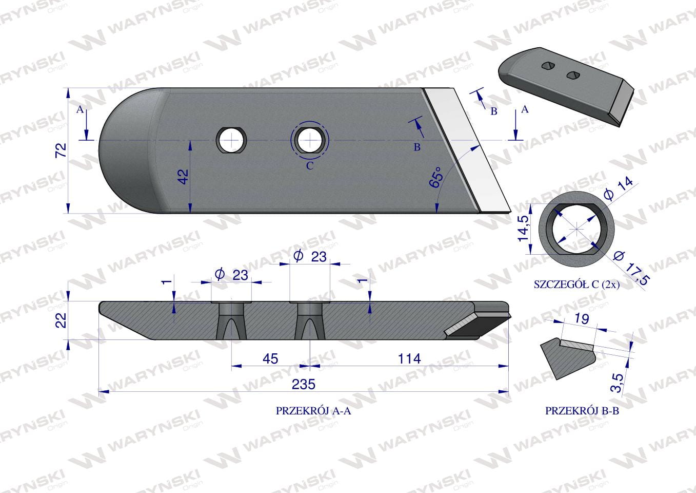 Dłuto. nakładka lemiesza lewe zastosowanie VIS/34 XL Unia Pług z węglikiem wolframu WARYŃSKI MAXX