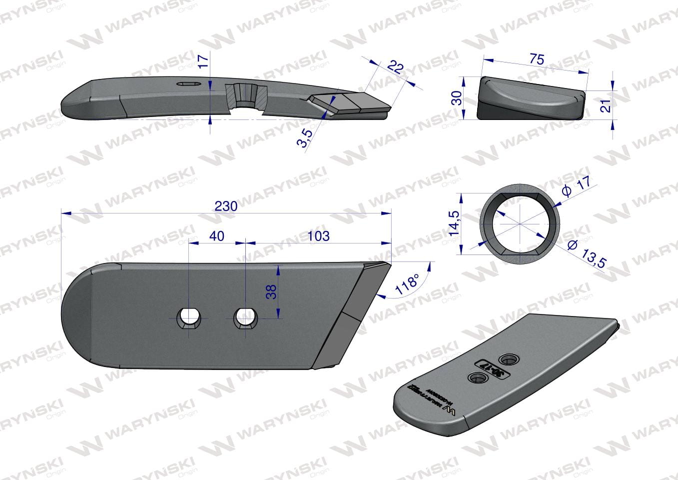 Dłuto. nakładka lemiesza prawa zastosowanie Kverneland z węglikiem wolframu WARYŃSKI MAXX