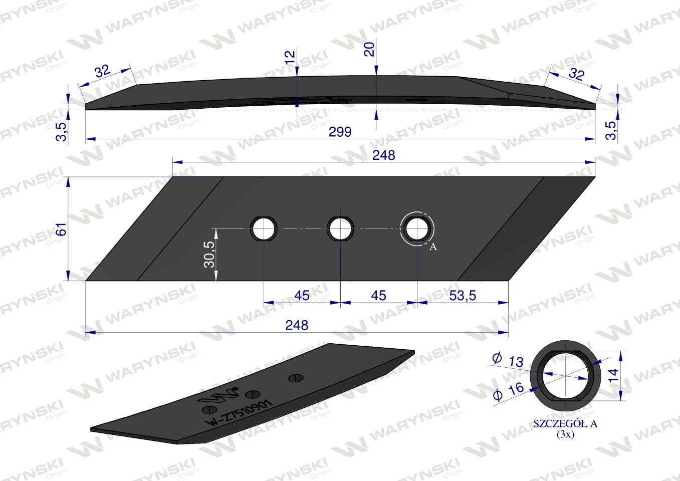 Dłuto. nakładka prawe zastosowanie MP350 Rabe Werk stal borowa Waryński