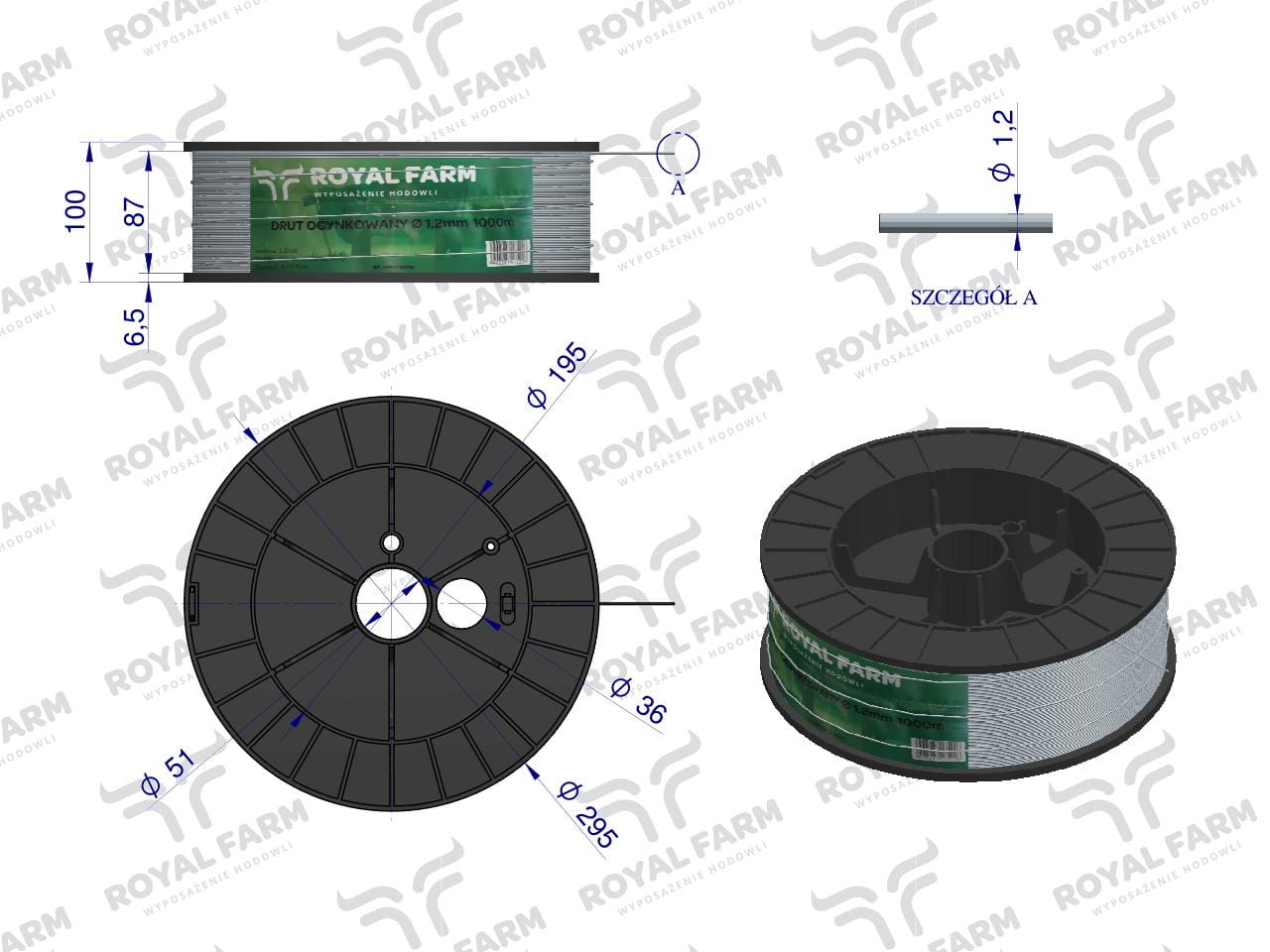 Drut (szpula) do pastucha 1000m ocynkowany fi 1.2 mm ROYAL FARM RM-105010019