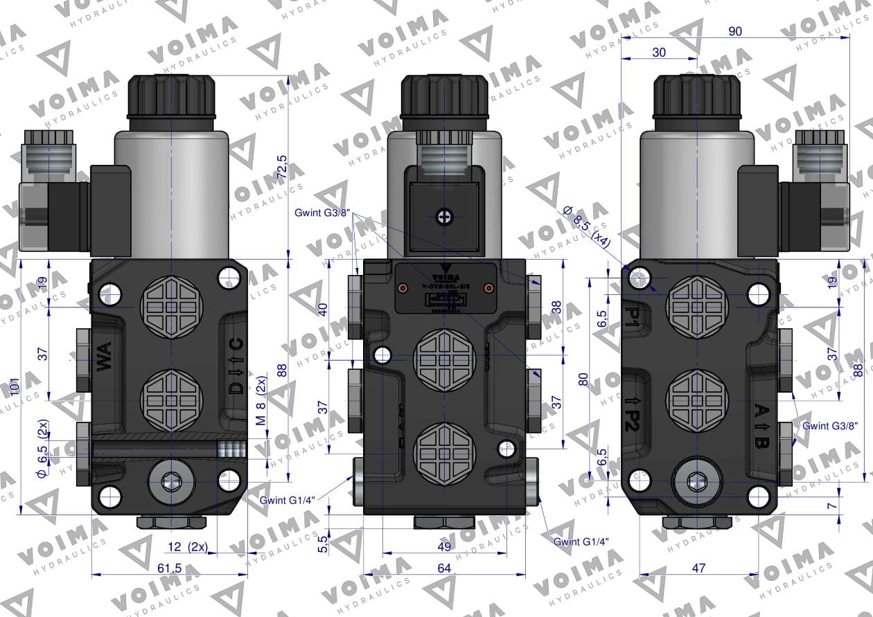 Dzielnik zawór elektrozawór kierunkowy elektromagnetyczny kontroli (DVS6/50 L/MIN) 12V DC 6/2 G3/8 50L VOIMA