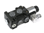 Zastosowanie: Elektrozawór znajduje zastosowanie przy rozdzielaczach jako dzielnik zapewniający dodatkową funkcję, Maszyny rolnicze, Maszyny budowlane, Cyklopy, Tury (sterowanie krokodylem, chwytakiem do bel), Ładowacze czołowe, rozdzielenie drugiej sekcji rozdzielacza tworząc tym samym trzecią sekcję - sterowane przyciskiem na joysticku. Przy ciśnieniu roboczym wyższym niż 200 bar należy połączyć ze zbiornikiem. Jeżeli ciśnienie robocze będzie niższe niż 200 bar należy zaślepić otwór np. stalowym hydraulicznym korkiem 1/4".
