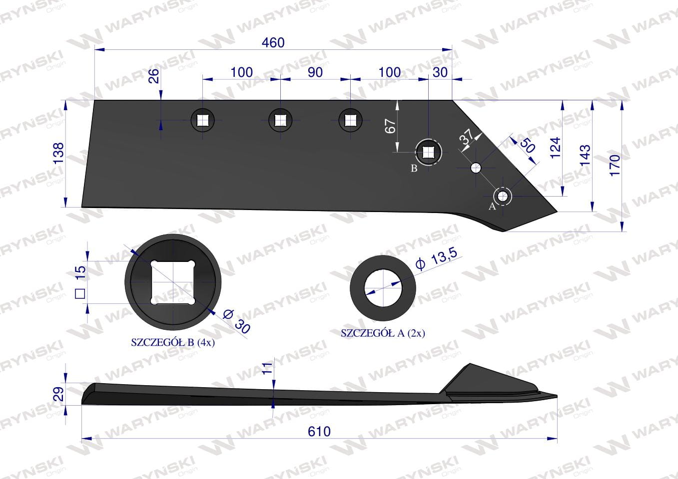 Części robocze marki WARYŃSKI wykonane są z niezwykle wytrzymałej i odpornej na ścieranie stali borowej pochodzącej z europejskich hut. Każda, nawet najmniejsza dostawa, posiada dołączony certyfikat potwierdzający skład materiałowy. Stal borowa posiada właściwości szczególnie przydatne w zastosowaniach konstrukcyjnych wymagających dużej wytrzymałości. Połączenie wysokogatunkowej stali borowej, monitorowanego procesu obróbki cieplnej oraz skrupulatna kontrola jakości produktów WARYŃSKI to gwarancja wydłużonego okresu eksploatacji. Produkty WARYŃSKI to oszczędność kosztów związanych z powolnym ścieraniem i zużyciem części roboczych. W trosce o trwałość naszych produktów oraz zadowolenie klientów proces produkcji lemieszy WARYŃSKI nie zakłada operacji spawania. Wszystkie rodzaje otworów są wykonane w specjalny sposób minimalizujący naprężenia oraz zmniejszający ryzyko pęknięć.