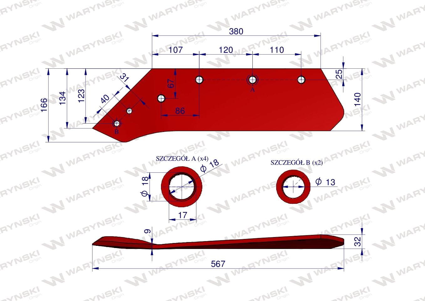 Części robocze marki WARYŃSKI wykonane są z niezwykle wytrzymałej i odpornej na ścieranie stali borowej pochodzącej z europejskich hut. Każda, nawet najmniejsza dostawa, posiada dołączony certyfikat potwierdzający skład materiałowy. Stal borowa posiada właściwości szczególnie przydatne w zastosowaniach konstrukcyjnych wymagających dużej wytrzymałości. Połączenie wysokogatunkowej stali borowej, monitorowanego procesu obróbki cieplnej oraz skrupulatna kontrola jakości produktów WARYŃSKI to gwarancja wydłużonego okresu eksploatacji. Produkty WARYŃSKI to oszczędność kosztów związanych z powolnym ścieraniem i zużyciem części roboczych. W trosce o trwałość naszych produktów oraz zadowolenie klientów proces produkcji lemieszy WARYŃSKI nie zakłada operacji spawania. Wszystkie rodzaje otworów są wykonane w specjalny sposób minimalizujący naprężenia oraz zmniejszający ryzyko pęknięć.