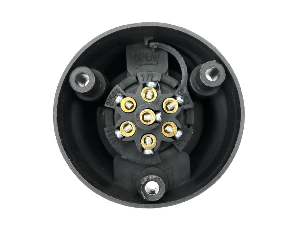 Gniazdo 7-Biegunowe EXPOM KWIDZYN eu charakteryzuję się zwarta kompaktową konstrukcją środek gniazda jest wypinany za pomocą zatrzasku, dzięki któremu możemy szybko przystąpić do wymiany bez użycia dodatkowych narzędzi.