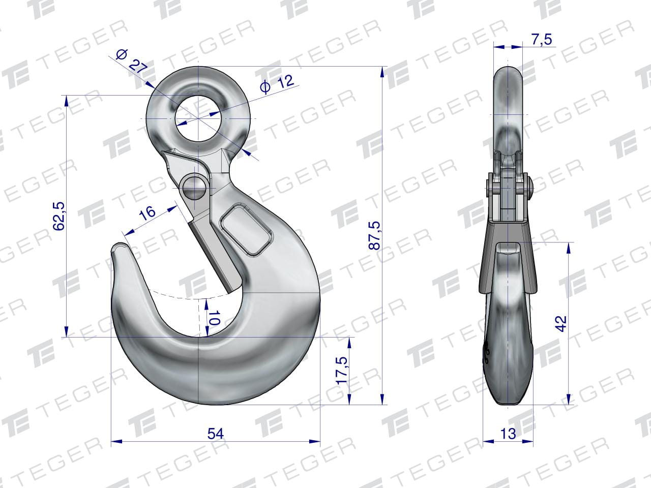 Hak z zabezpieczeniem, zapadką 250 TEGER (sprzedawane po 10)