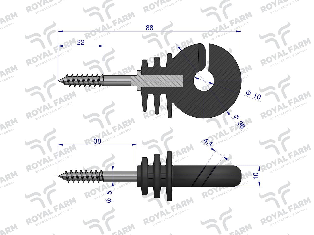 Izolator okrągły z wkrętem fi 5 do drewna ROYAL FARM (sprzedawane po 25 szt)
