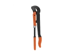 Wykonany z odkuwanej, wysokiej jakości stali chromowo-wanadowej (CrV). Szlifowane krawędzie szczęk mocno chwytają nawet śliskie powierzchnie rur. Posiada śrubową regulację rozwarcia szczęk.