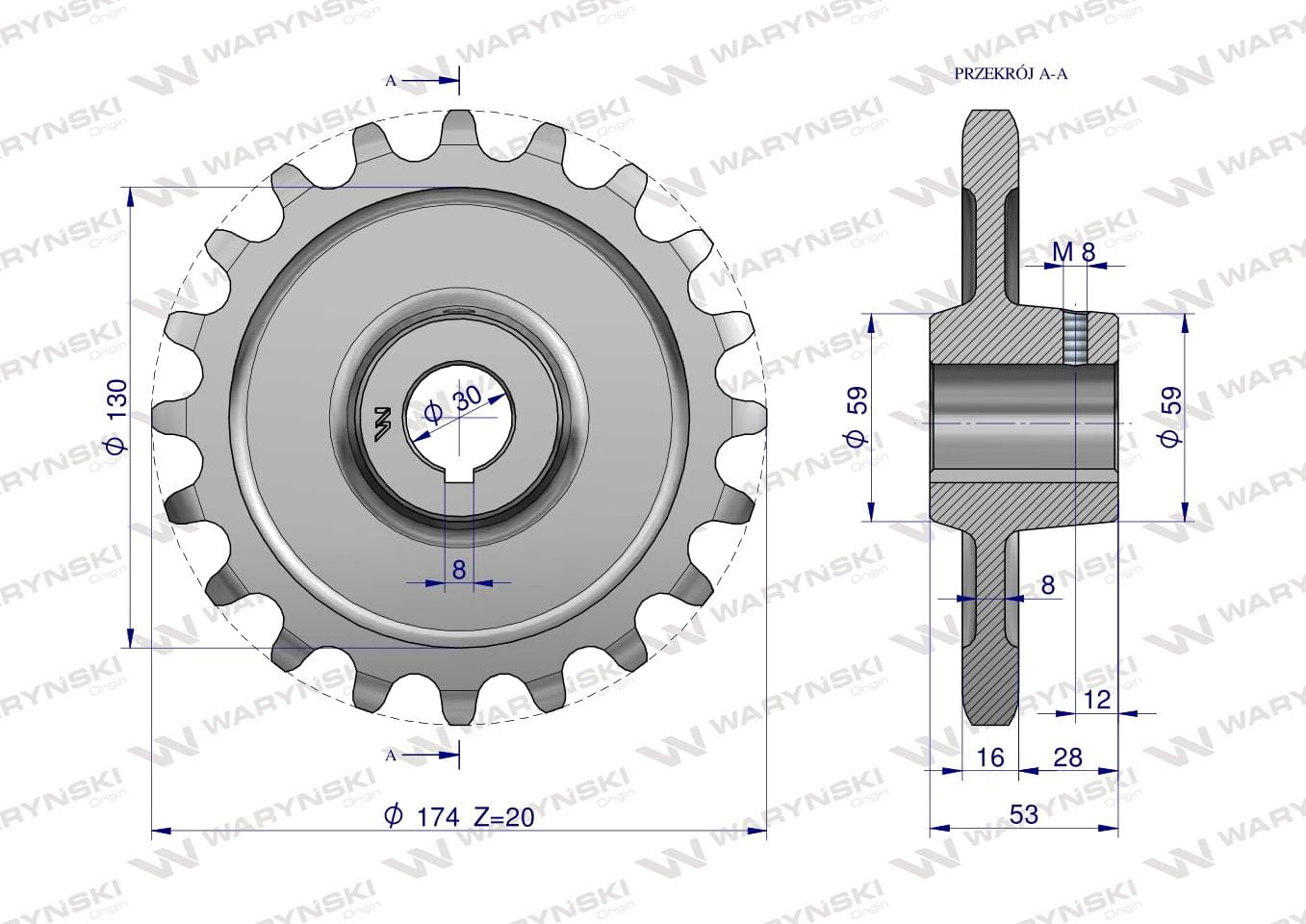 Koło łańcuchowe stalowe hartowane Z-20 1" fi-30 Rozrzutnik 2208050063 WARYŃSKI