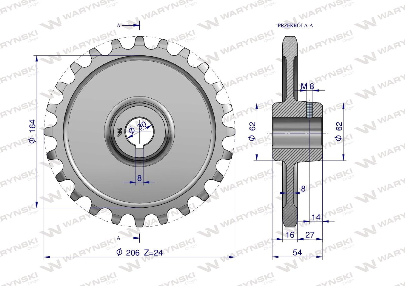 Koło łańcuchowe stalowe hartowane Z-24 1" fi-30 Rozrzutnik 2219250031 WARYŃSKI