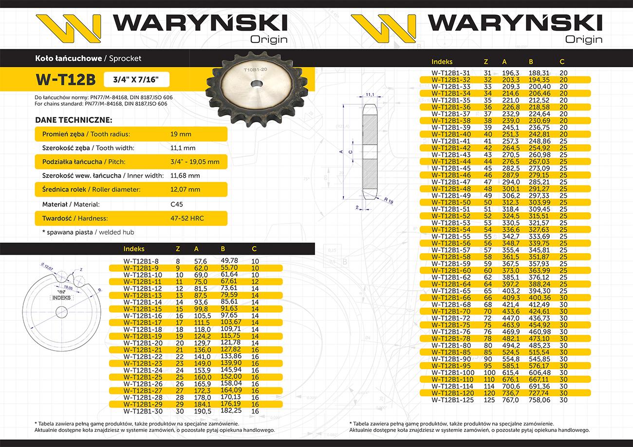 Zwiększona odporność na ścieranie. Hartowanie indukcyjne zębów sprawia, że koła mają dłuższą żywotność, są bardziej odporne na ścieranie. Proces ten odbywa się pod specjalnym nadzorem, dzięki czemu zapewnione są idealne paramenty pieca oraz cieczy chłodzącej. Wydłużona żywotność. To zasługa dokładności wykonania uzębienia, podziałki oraz średnicy podziałowej, dzięki temu łańcuch współpracuje z kołem bez niepotrzebnych oporów. Zapobiega to ścieraniu się rolek oraz rozciąganiu i uszkadzaniu się łańcuchów. Zwiększona odporność na pękanie. Wszystkie koła wykonane zostały z wysokowęglowej stali. Bardzo dobra współpraca z łańcuchami Waryński. Dokładne i powtarzalne odległości pomiędzy zębami powodują, że łańcuch idealnie układa się na kole, tym samym nie uszkadzając łańcucha.