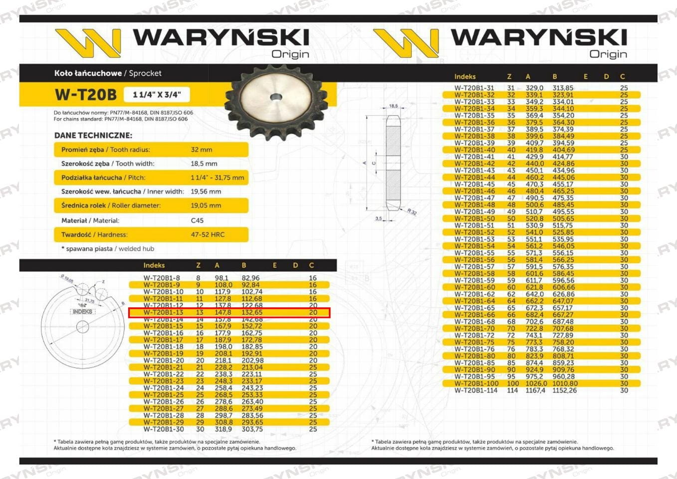 Koło zębate hartowane tarcza 20B-1 (R1 1. 1/4) Z-13 Waryński