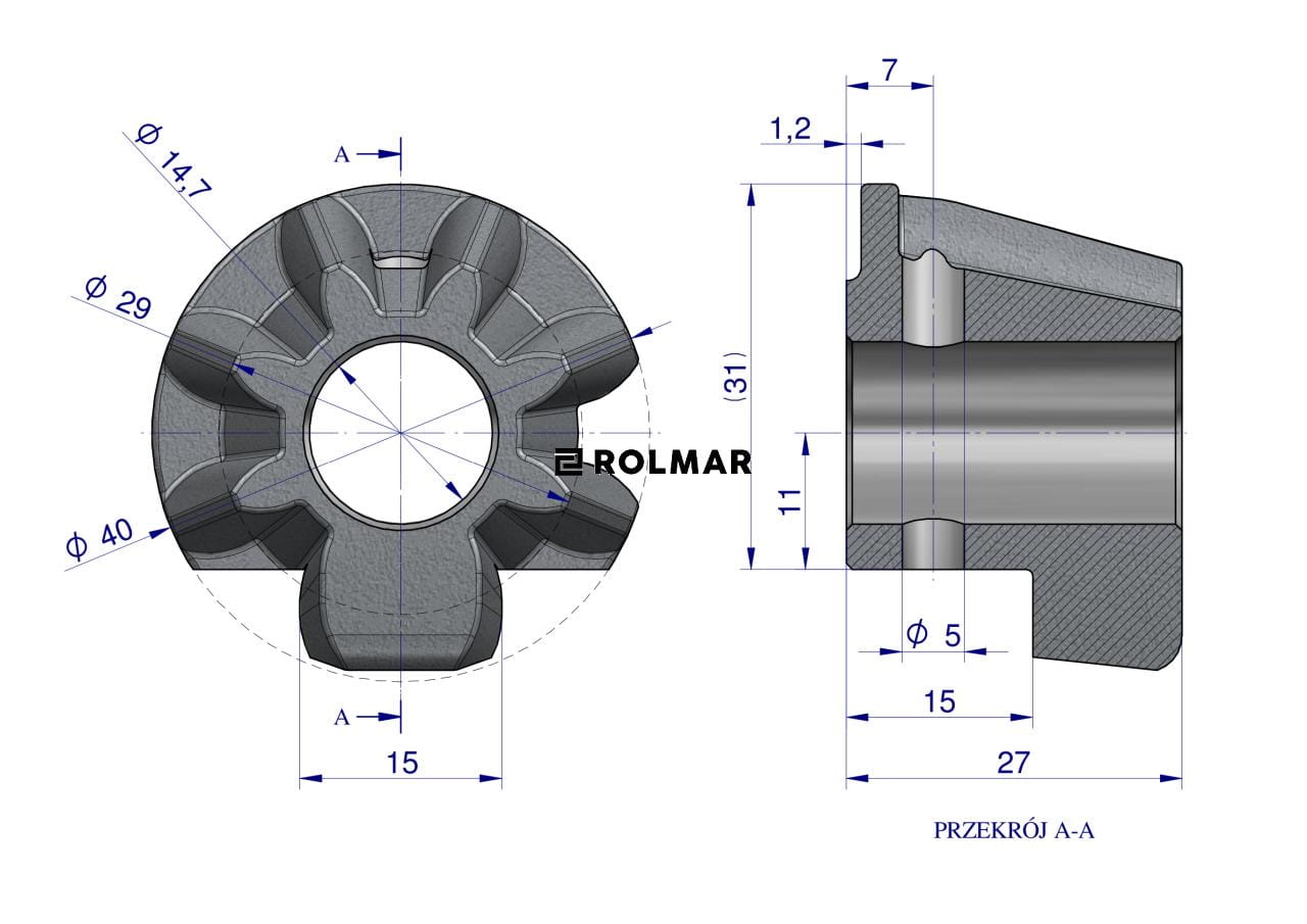 Koło zębate stożkowe chwytacza Prasa Kostka zamiennik Sipma