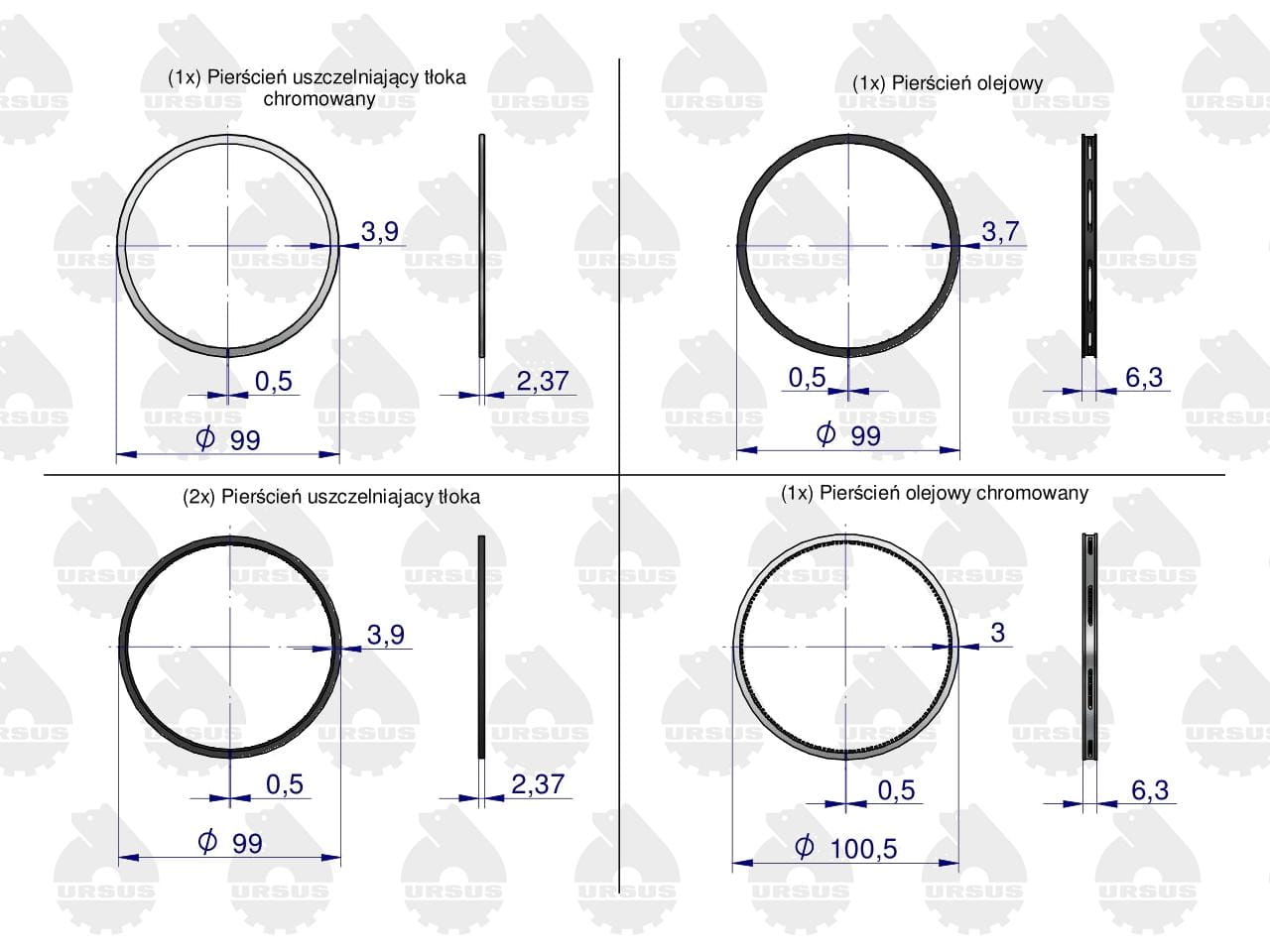 Komplet pierścieni silnika 1-tłok K1-2157-000 MF-4 ORYGINAŁ URSUS
