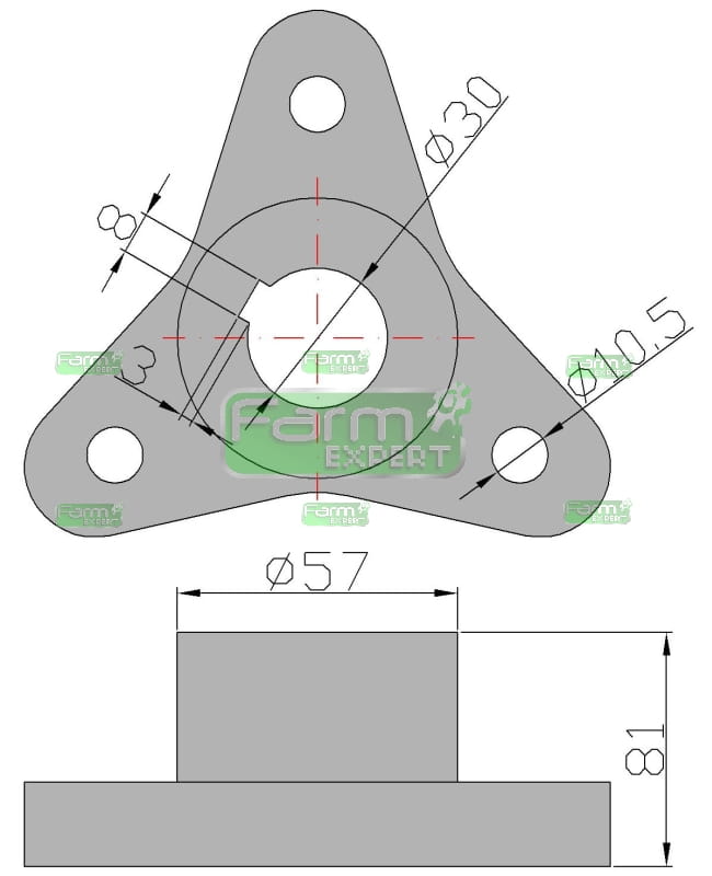 Końcówka sprzęgła trzyotworowa wpust fi30 Rozrzutnik 2208030330