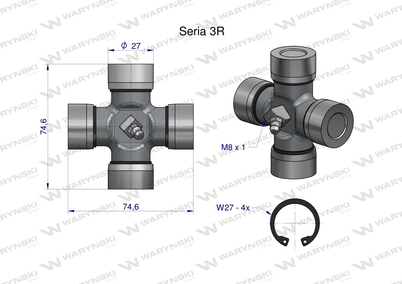 Krzyżak wału 27x74.6 Seria 3R Waryński W219401