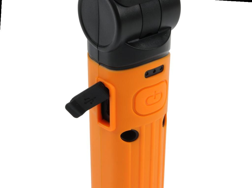 Lampa warsztatowa, LED COB z przegubem (łamana) 1120lm, z diodą pomocniczą LED SMD, z magnesem mocującym, wskaźnikiem naładowania LED BLUE, w odpornej bryzgoszczelnej, spełniającej standard IP44, trwałej obudowie z tworzywa ABS, litowo-jonowy akumulator 4000 mAh ładowany USB, stosowana w pracach budowlanych naprawczych warsztatowych rekreacji, Teger