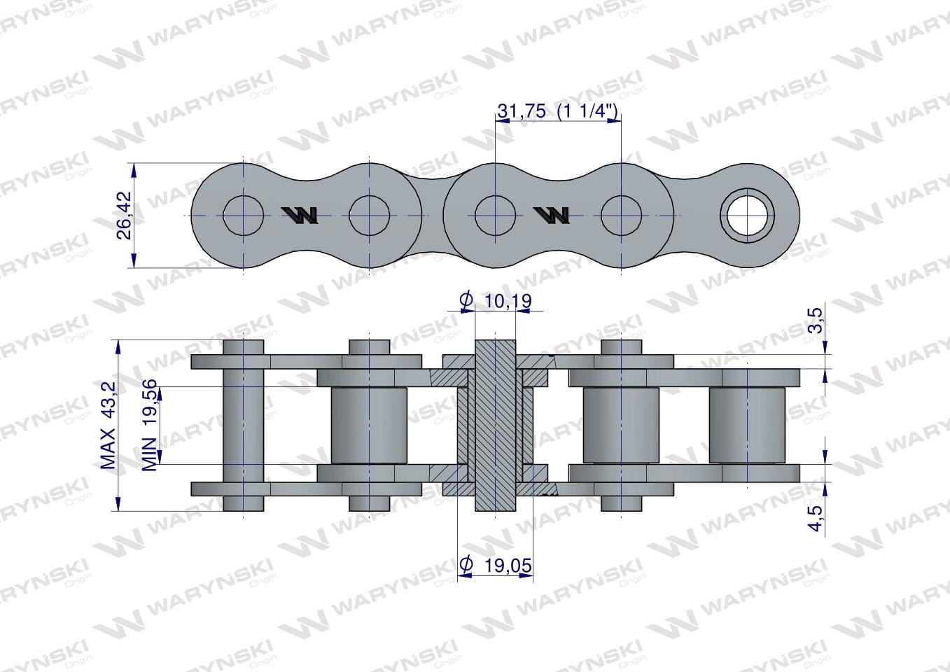 Podziałka: 1 1/4" / 31,750 mm