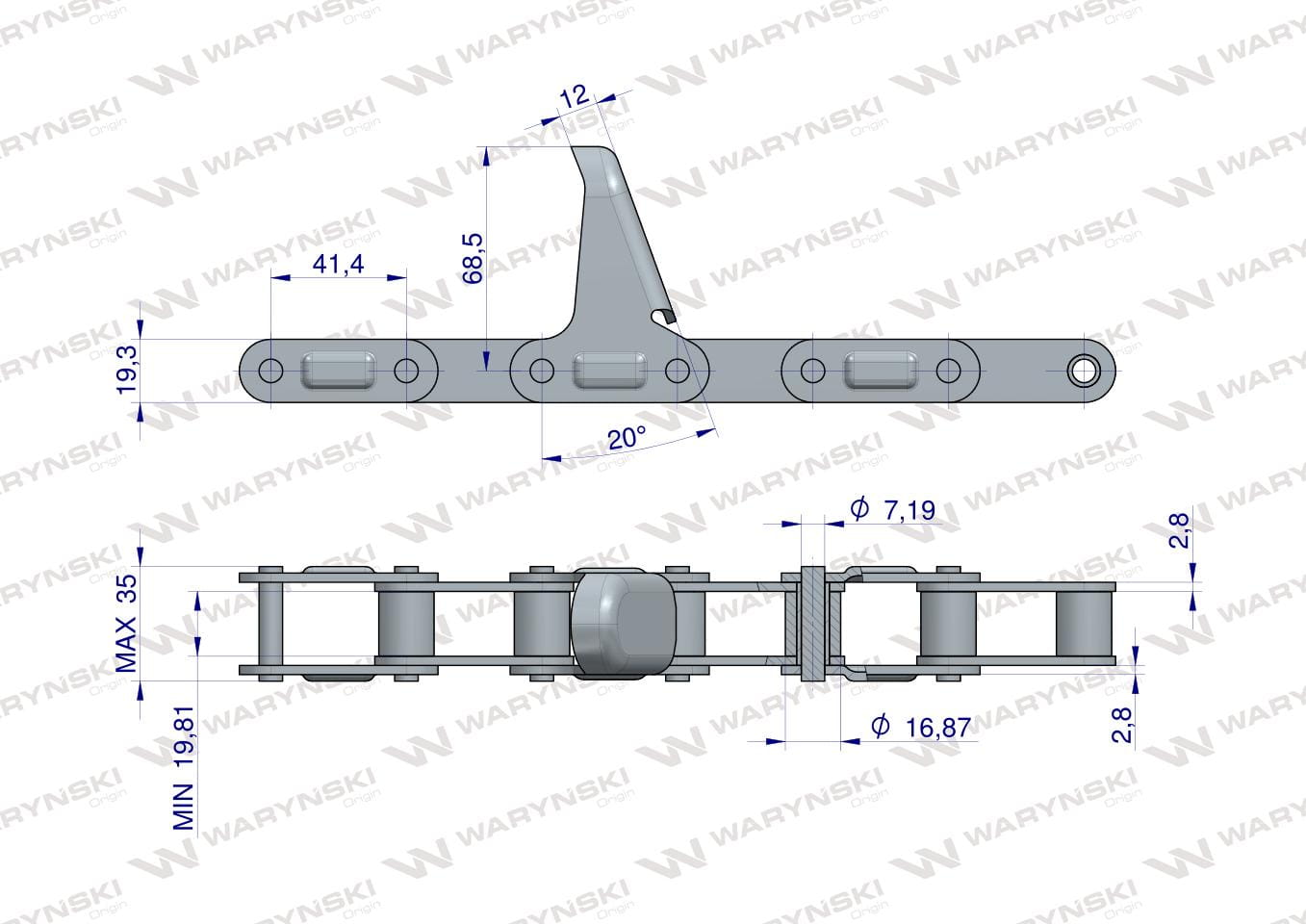 Łańcuch obrywacza kolb przystawki do kukurydzy zamknięty 54 ogniwa CA550 x 54A LV41NF1 9 płytek zastosowanie Laverda WARYŃSKI