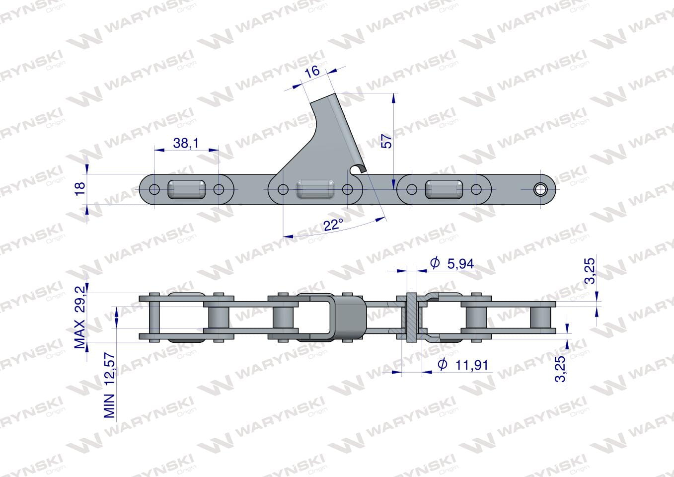 Łańcuch obrywacza kolb przystawki do kukurydzy zamknięty 64 ogniw CA2060H x 64A C6EF2 8 płytek zastosowanie CNH Benac WARYŃSKI